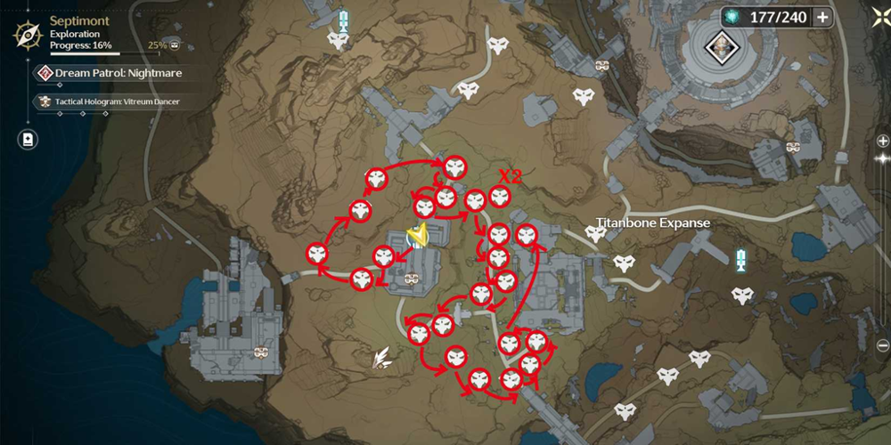 Start from your previous position in Wuthering Waves and head eastward, following the path that descends toward the southern resonance beacon of Titanbone Expanse.